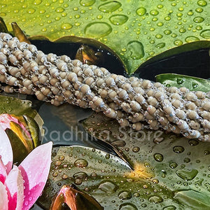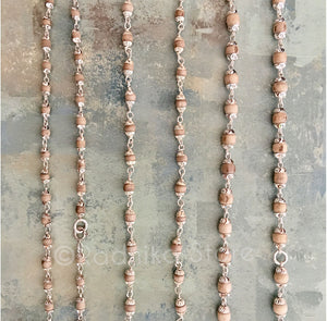 This fancy silver tulsi necklace is handcrafted in Vrindavan.  All our silver is Sterling silver.