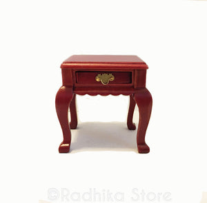This fancy carved wood Choki (offering table) or side table with cherry finish can be used as a night stand, next to Their bed or next to a throne, or as a miniature eating table. A table can be used for meditation when making your bhoga offerings to your Lordships..