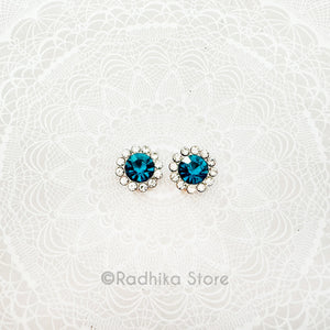 Good quality Rhinestones. Deep Teal Blue, With Silver Color Metal.