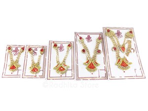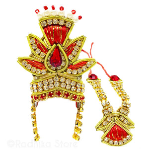 Gorgeous, Deity Crown and Necklace Set - With colors Saffron (Deep Orange) red, and Gold.
