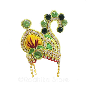 Beautiful Crown with Swan Design. Hand made in Vrindavan. (The rhinestone tassels can be removed if you prefer just cut them off and can be used as other jewelry. The crown has velcro strings in the back, so you can adjust the size.