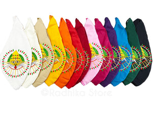 Hand made in Vrindavan - Embroidered, Good quality, Japa Bead bag,with Lord Narasimhadeva brand smilie. With a zipper to keep your keys, Lakshmi (money) or any other small necessities, sacred items or prayers with you.