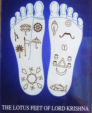 Great for meditating on the symbols of the Lotus feet of the Supreme Lord Sri Krishna. You can place on your altar or anywhere, so you can be reminded of Lord Krishna’s transcendental Lotus feet.