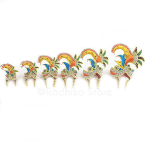 Note: If your Deities are very thin or have a extra tall base, you may want to downsize your crown one size.. Many Devotees like a little bit smaller crowns for Gaura Nitai. Devotees generally order one size smaller for Radha Rani, and sometimes even two sizes smaller. Generally smaller size crowns look better than oversized crowns.