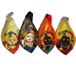 My Gopal Krishna- Exclusive, hand-painted, By Brajabasi in Vrindavan. Thick Cotton cloth, bead bag. A beautiful work of art. -These bags have a shimmer glitter paint.