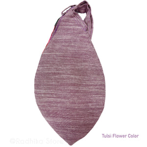 Keep your Japa beads safe in this decorative bead bag. The large opening is to put your right hand with the beads in and the small opening on the opposite side is for your index finger to go outside of the bag so that one does not touch the instructing finger to the beads. The long string is to put around your neck if you like. When finished chanting, you can hang them from the strap, safely on a hook in a clean place.