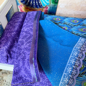 Vrindavan Peacock Feather Bed -Blues With Purple Manjari Sheets