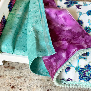 Flowers in Yamuna- Blues and Purple colors with Teal Green Marble Look Sheets.