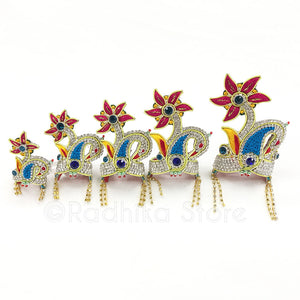 Note: If your Deities are very thin, you may want to downsize your crown one size.. Many Devotees like a little bit smaller crowns for Gaura Nitai. Devotees generally order one size smaller for Radha Rani, and sometimes even two sizes smaller. Generally smaller size crowns look better than oversized crowns.