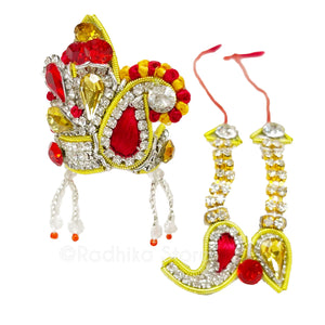 Note: If your Deities are very thin or have a extra tall base, you may want to downsize your crown one size.. Many Devotees like a little bit smaller crowns for Gaura Nitai. Devotees generally order one size smaller for Radha Rani, and sometimes even two sizes smaller. Generally smaller size crowns look better than oversized crowns.