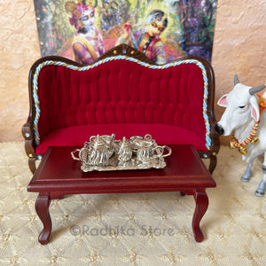 Beautiful Red Velvet fabric with a Krishna Blue and gold edging and Jewels.