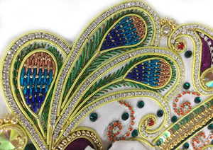 Royal Peacocks - White Satin - 4" Inch - Laddu Gopal Outfit