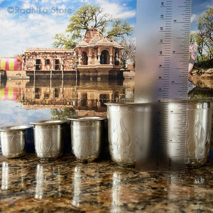This Deity water cup is sterling silver and The etched design looks like two dolphins or whales splashing in the water or it could be considered as flowers. As you wish. It includes a lid with a flower design. This cup has a nice shape at the bottom as well.