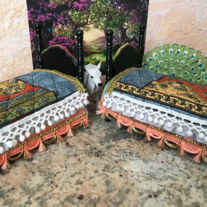 This bed can be for, Sri Sri Krishna Balaram or Sri Sri Gaura Nitai, Sri Sri Radha Krishna,Srila Prabhupada and Srila Bhaktisiddhantaor any of your Deities.