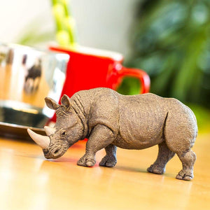 Size and Color:Standing 5.75 inches long and 2.5 inches tall, this white rhino toy statuette is about the size of a soda can resting on its side.