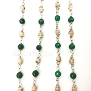 This beautiful Tulsi necklace has Emerald Semi Precious stones, with Sterling Silver caps and chain links and is handcrafted in Vrindavan. (All of our silver Jewelry is Sterling Sliver. Each and every one of these necklaces is a work of art. They will vary slightly in size, color, and design.