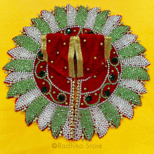 Handcrafted in the Holy Dham, Vrindavan, for your Laddu Gopal!.Most Aspicous Pavan Sarovara on Aksayatirtiya Outfit. Red velvet fabric. Good for colder weather. Good quality rhinestones and crystals.