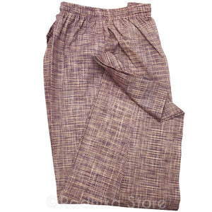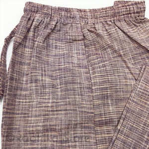 Hand-made in Vrindavan- Comfortable, Kadi, natural Jute, and Cotton, medium weight fabric, Yogi pants with elastic waistband, drawstring, and side pockets. Tweed Kadi has natural imperfections. A rustic look.