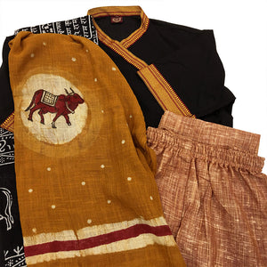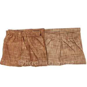 Hand-made in Vrindavan- Comfortable, Kadi, natural Jute, and Cotton, medium weight fabric, Yogi pants with elastic waistband, drawstring, and side pockets. Tweed Kadi has natural imperfections. A rustic look.
