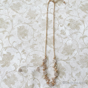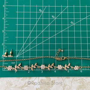 Sweet, sparkling Vrindavan Flower Vine with rhinestone crystals necklace and earring set. Please see the photo for the size.