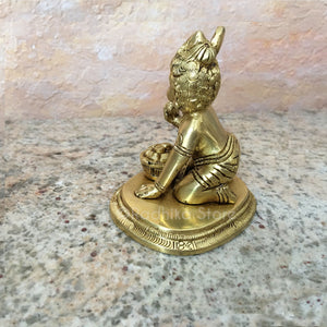 Mother Yaśodā took her son on her lap and gave him her milk. While Kṛṣṇa was sucking the milk, she was smiling, enjoying the beauty of her child's face. Suddenly, the milk which was on the oven began to boil over. Just to stop the milk from spilling, mother Yaśodā at once put Kṛṣṇa aside and went to the oven. Left in that state by His mother, Kṛṣṇa became very angry, and His lips and eyes became red in rage. He pressed His teeth and lips, and taking up a piece of stone, He immediately broke the butter pot. He took butter out of it, and with false tears in His eyes, He began to eat the butter in a secluded place.