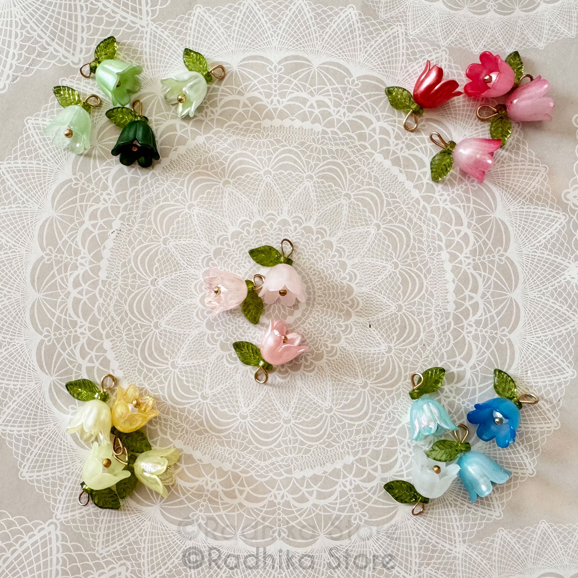 Opalescent flower Bell Charms that can be used as Deity earrings or  on turbans, end of flute, to make necklaces, or as you wish.