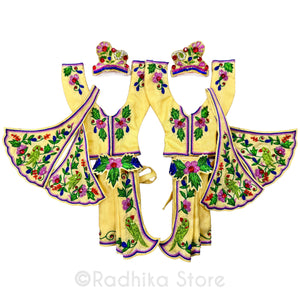 Hand-made in Vrindavan by ISKCON Devotees. (Comes with Crowns and Belts)