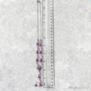 Rose Vine Design Deity Necklace. Measures- 4" inches on each side of neck. (8" total), plus 2" inches dangling pendant and extra chain link)(For larger Deities or to make into smaller Necklaces or use the flowers for jewelry. Good quality with silver color metal. See the measurement photo